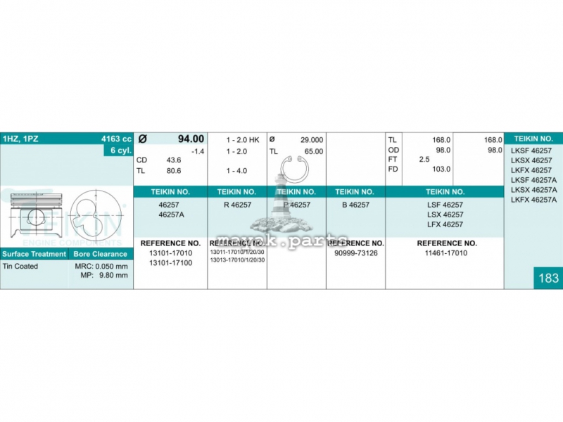 Поршня Toyota 94mm (2k*2*4)