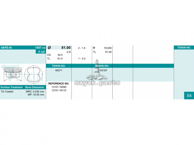 Поршня Toyota =O32006 COROLLA AE9# (87-), CARINA 2 AT171 (87-) 4A-FE 1 1.5-1.5-3